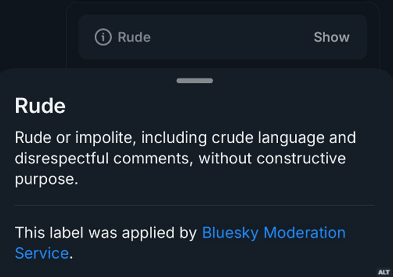 Freedom of speech doesn’t equate to freedom from consequence, and so Bluesky’s users can make their own decisions about how to address an account they find problematic. That could mean completely avoiding an account labeled as rude or removing an original post used in a quote post that could be deemed toxic; a sort of scarlet letter placed on their profile.